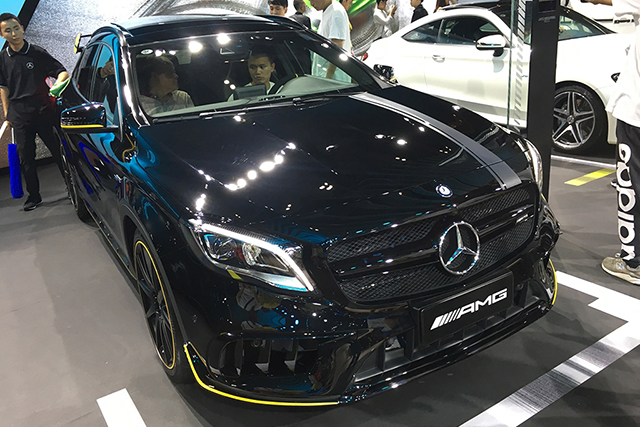梅赛德斯-AMG在2017深港澳车展上发布了三款限量版车型,包括AMG A 45 4MATIC暗夜雷霆限量版、AMG CLA 45 4MATIC暗夜雷霆限量版、AMG GLA 45 4MATIC暗夜雷霆限量版,新车采用了特殊的宇宙黑车身涂装,装饰有哑光石墨灰色和黄色相间的车身拉花。此外,在前包围、轮圈、外部后视镜外壳、侧裙、后扰流板和扩散器等处均点缀有黄色饰条,而在内饰方面也同样家族了黄色元素装饰。