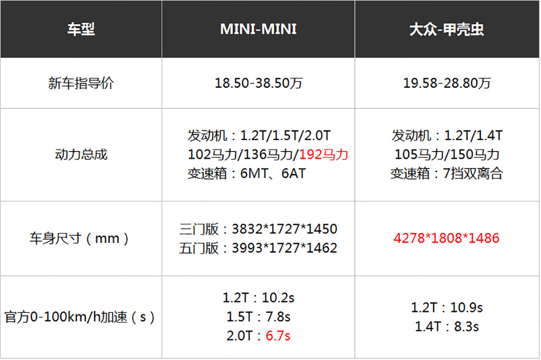 从动态表现来说,无论是动力响应还是操控,MINI确实都比甲壳虫更好。但MINI悬挂比甲壳虫硬,空间也比甲壳虫小。抛开外观不同人各有所爱,教授相信对于女生来说,一台车舒服好开远比动力来得重要。