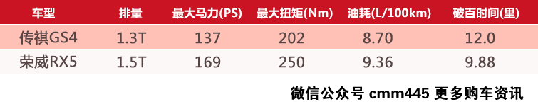 GS4和RX5都是国产高品质SUV的代表之作,如果你关注动力,毫无疑问得选RX5,GS4的1.3T确实有点不得劲。当然,GS4也有1.5T可选,但实测表示1.5T并没有为它带来多好的动力,百公里加速就快那么1秒左右,因此,我们会更推荐你购买1.3T,油耗更低。而如果你对动力要求不是很高,那么选GS4会更好,因为它的底盘质感更胜一筹。