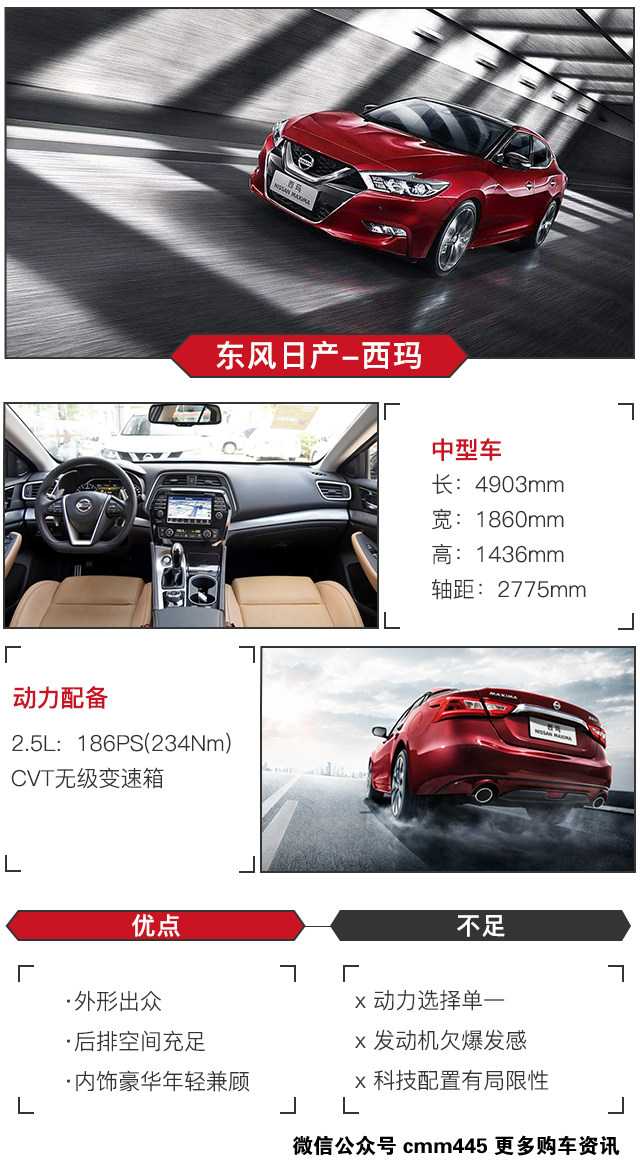 东风日产引进西玛目的非常明确,就是主打运动中型车的细分市场。西玛在外观设计上具有较强运动风格,且融入日产最新设计理念,如果说天籁外观沉稳中庸,那么西玛可以用运动、前卫来形容。外形确实很有运动氛围,至于开起来嘛就...运动?舒适吧!