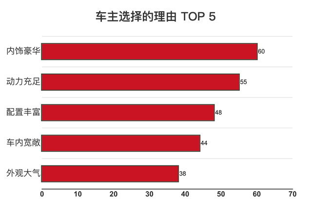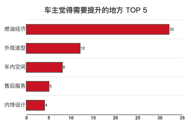 排名第三的是车内空间,但指的不是乘坐部分的,而是一些细节的储物设计以及后备箱容量方面,部分车主觉得还能做得更好。