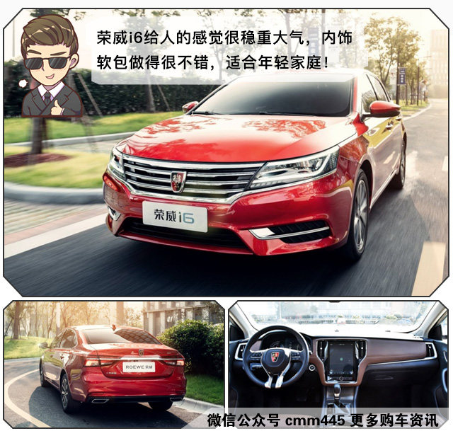 内饰的设计及用料颇具匠心,大量软包材料的运用让车内档次感不错,当然它全系标配胎压监测、ESP、蓝牙、日间行车灯等配置,部分车型还带有定速巡航、车内氛围灯、后座出风口、智能YunOS系统、10.4英寸大屏幕等锦上添花的配置。相比其他国产车型,荣威i6的动力表现要强劲得多,而且内饰的氛围也更出色,所以荣威i6有望成为国产轿车中的神车!只是双离合变速箱在目前还是难以让大家都接受,当然它对于油耗的降低还是起到一定作用的。