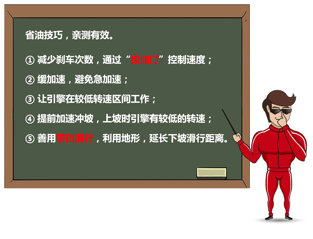 善用斜坡溜车、带挡滑行、在爬坡前提早加速。