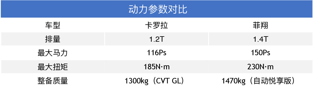 菲翔的动力参数是比卡罗拉要高的,150Ps的马力和230N·m的最大扭矩,再搭配上换挡快、动力传递直接的7速双离合变速箱,直观的驾驶感受上,1.4T的菲翔的确比1.2T的卡罗拉要畅快。