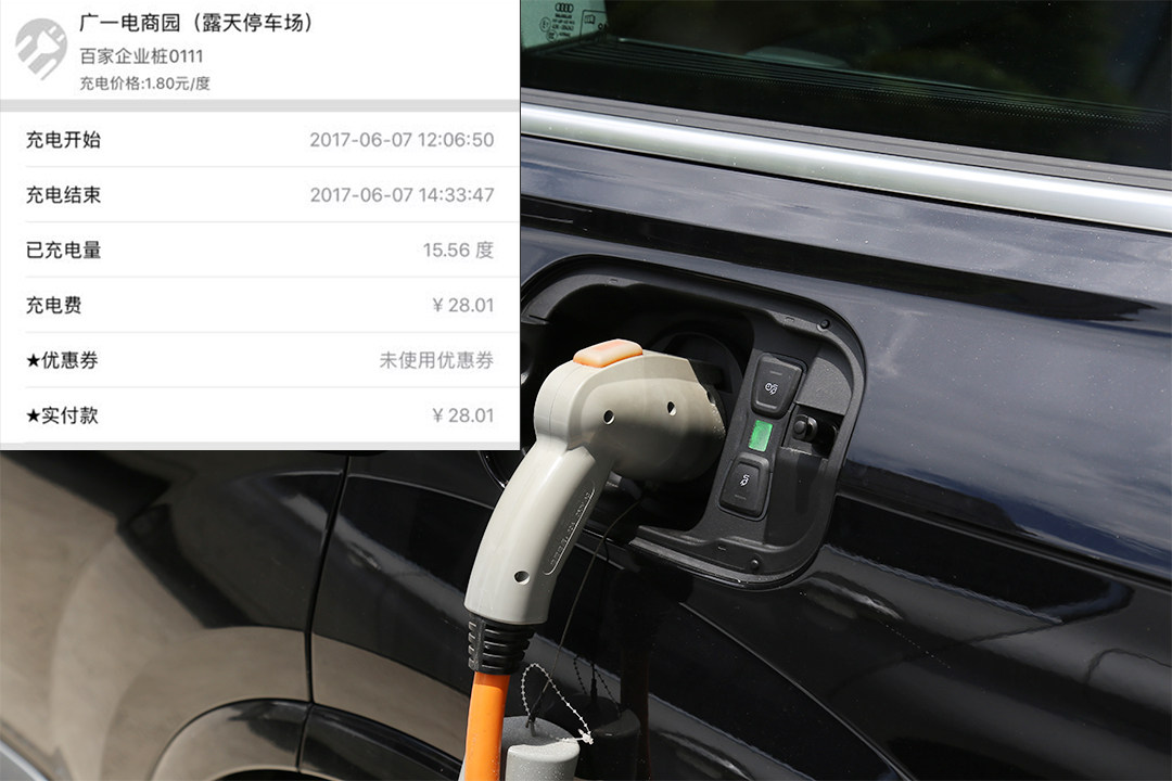 操作很简单,只需要插上充电插头,利用手机软件扫码,即可激活电桩充电程序,并进入计费模式。(需要注意的是,Q7 e-tron在锁车状态下,充电插头也是锁定不能拔出的。因此不需要担心被坏人强行拔下。)