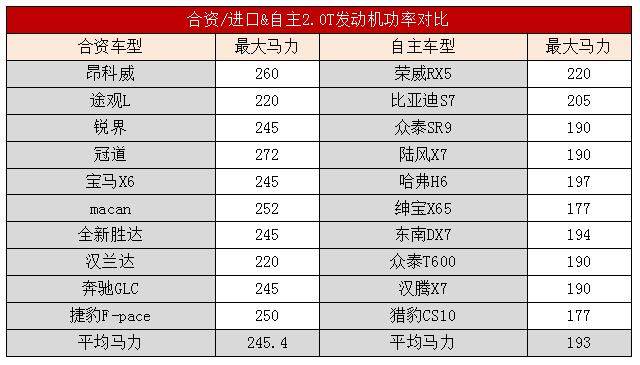 在技术宅看来,自主的2.0T发动机和合资/进口车型的2.0T发动机不是同一水平线上的,虽然同是2.0T车型,但是输出也是有高有低。就好像同样是身高一米七,占旭刚可以举起77公斤的杠铃,你扛一袋大米都说累一样。自主的2.0T在合资车型的2.0T面前究竟弱不弱,弱多少,咱们用一张表格来比较。