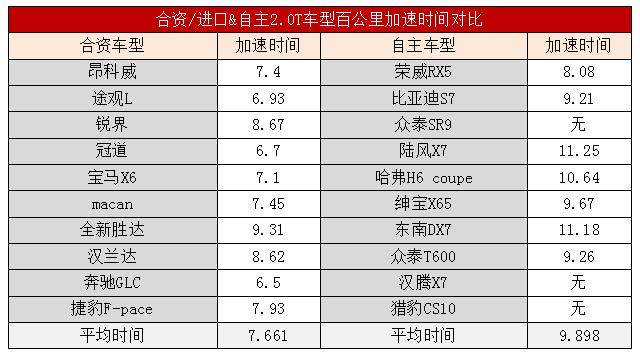 可以看出在输出上自主2.0T就输了一大截,平均马力少了整整52.4马力,那么实际表现呢?