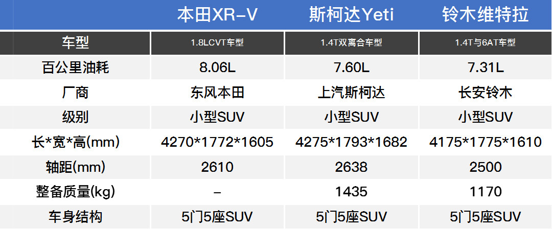今天教授所推荐的这几款车型搭载的都是不同的变速箱,通过数据分析也不难看出它们的表现。维特拉虽然知名度偏低,但1.4T与6AT变速箱的配合良好,百公里油耗为7.31L;而XR-V则是CVT的代表,1.8L发动机动力虽然谈不上出色,但有了CVT变速箱的加成,使得其百公里油耗仅为8.06L;最后的Yeti则是1.4T与双离合变速箱的黄金动力总成,不仅动力输出效率更高,其百公里油耗也仅为7.60L。所以说油耗的优劣不是单纯的取决于搭载的变速箱类型,更关键的是在于整车的标定。