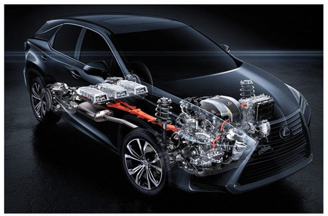 就目前来看,现款雷克萨斯RX450h装备的这套发动机+前后两电机,组成的适时四驱系统赢得了不错的市场口碑,其独特之处在于它并没有配备传统的传动轴,前轮动力来自于发动机和前电动机,而后轮的动力只依靠一台后电动机。