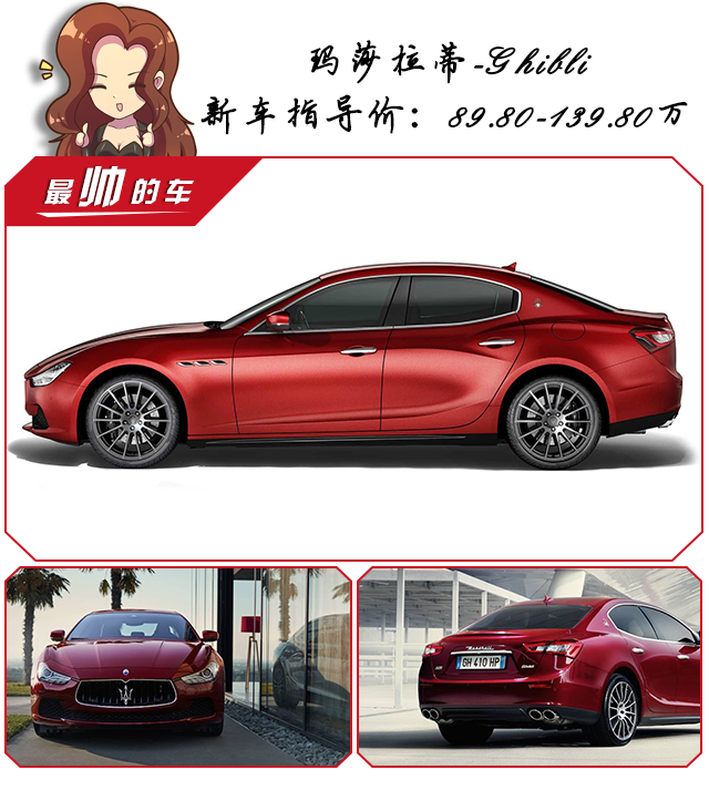 首先一姐想说,玛莎拉蒂的车标是目前一姐认为最好看的车标(没有之一!)。而Ghibli作为玛莎拉蒂的入门车也一点都不含糊。优美的流线外形、动感十足的轮廓与来自大牌的精湛工艺,尽情的演绎玛莎拉蒂独特的奢华气质。