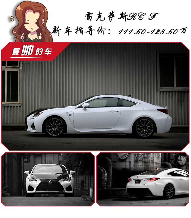 雷克萨斯RC F的帅不同于一般跑车的帅。锋芒毕露的LED灯组与有着锐利折角的前脸(标志性的纺锤形格栅)配合得完美无瑕。突出的前脸一下子就能抓住人的眼球。如果被前脸吓唬到了,那就看看那短小精悍的短车尾吧,是不是有点性感呢?这样独树一帜的帅,不知道你喜不喜欢呢?