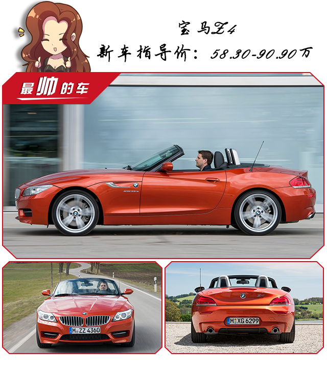 宝马的车总是脱离不了它的家族气息。同样,宝马Z4也有着经典的元素。而在这之下,平滑宽阔的发动机舱盖上那几道强有力的压线、侧身丰满的肌肉线条、性感的臀部,毕竟Z4是一台设计团队由美女设计师所领导的队伍精心打造的产物,既经典又个性!(哇塞,像一姐这样又美又能干的女人真的越来越多了呢~)。