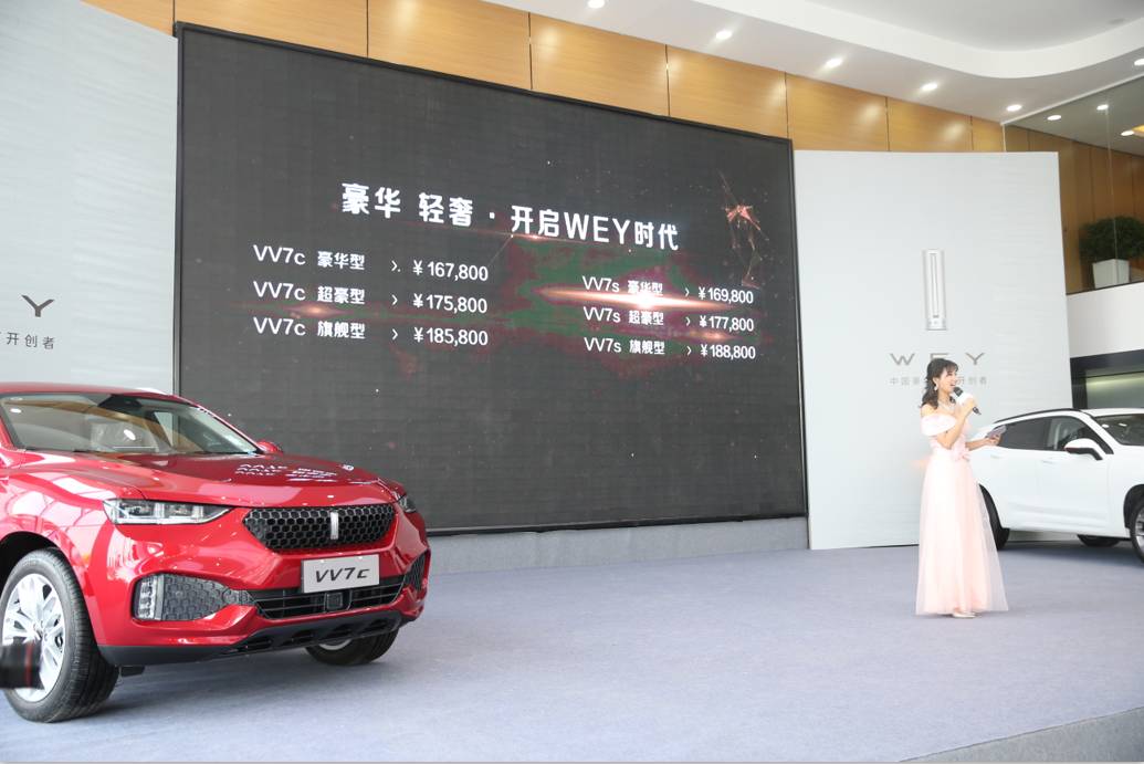 VV7c/VV7s,WEY品牌首款量产车型,定位“轻奢、动感”,售价16.78万-18.88万元,在材质、技术、安全保障和造车理念等方面均以豪华SUV为标准。