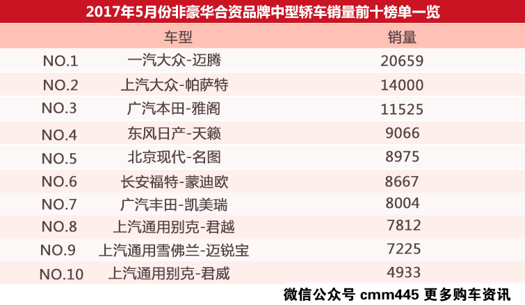 现如今的合资中型轿车已然成为家用轿车市场的选择主流,那么这些个开中型轿车的“小老板们”都喜欢什么车?五月销量不乏亮点,不如看着表格跟我一起看看。