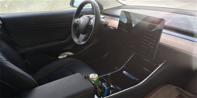 Model 3中控台一如既往的简洁,前排采用一整块实木饰板。不同于以往车型,大尺寸显示屏被独立安置,并采用横置布局,据闻画面清晰度和操作界面都会进行优化。搭配全新样式的方向盘,内饰一点不显廉价。