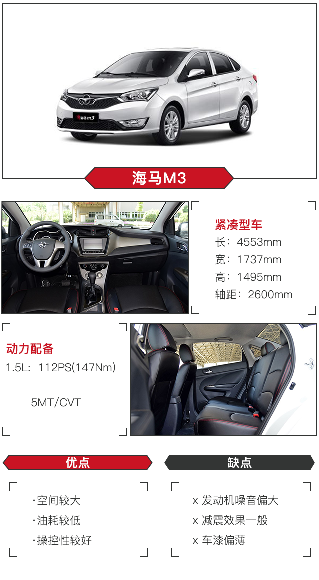 无论是空间表现好、配置丰富的悦翔V7,还是油耗低、操控性较好的海马M3,亦或者内饰做工较为精致的和悦A30,它们对于预算不多的年轻人来说都有着很大的吸引力,花7万左右买一辆自动挡轿车,小雅觉得性价比很高,值得考虑!