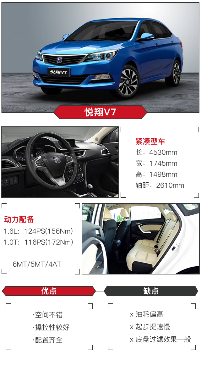 搭载1.0T、1.6L发动机,匹配5挡手动、6挡手动、4挡手自一体变速箱,可能起步动力有些肉,但二档之后只有舍得给油,动力还是不错的,毕竟家用也不太讲究背推感是吧。乘坐空间还可以,后备箱容量大。自动档的话,如果转向需要电动助力那就得选顶配了,底盘扎实。配置比较厚道,多功能方向盘、ABS、防紫外线隔热玻璃、EBD全系标配。总体而言性价比还是很高的。