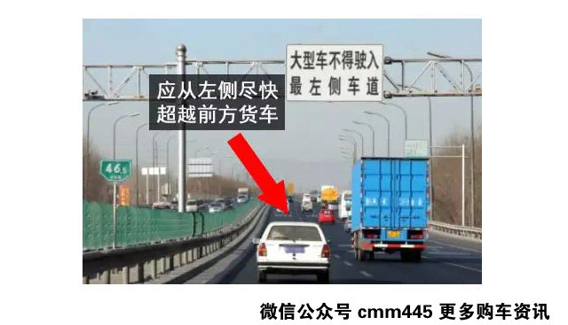 1.面对大货车能超过就尽快超车,先观察前方的路况是否良好,打转向灯、鸣喇叭、闪大灯示意超车。若果此时货车并没有变线占道行驶,则加大油门尽快超车。