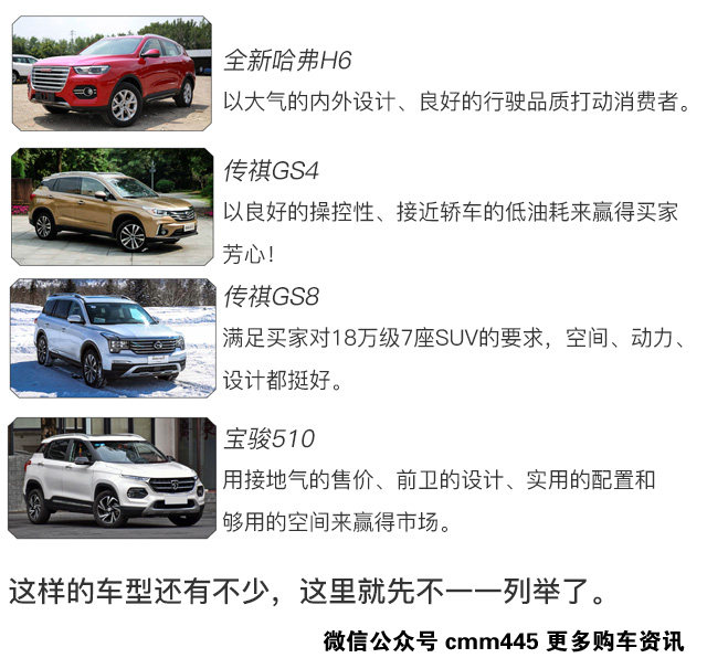 不过庆幸的是现在卖得好、热度高的清一色是咱坚持原创的车型!其中的佼佼者便是传祺GS4、传祺GS8、宝骏510、荣威RX5等车型,所以穷则思变、坚持自我创新才是出路。