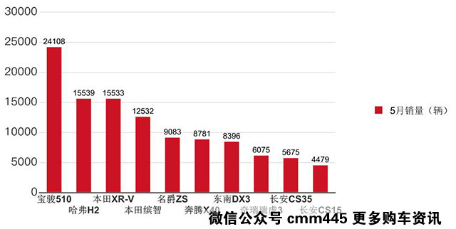 从5月小型SUV销量上来看,显然自主车型更加具有优势,占据销量榜前2名。其中哈弗H2还是常年霸占销量榜的常青树,宝骏510也是异军突起,月销量直逼总榜第一,而且合资小型SUV只有本田缤智和XR-V入榜,其它全为自主小型SUV。