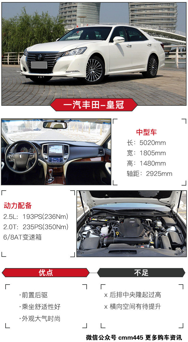 总结:即使是以前商务气息非常浓厚的皇冠、君越,随着时代的发展,无论是外观还是内饰都越来越年轻化,其次价格定位也变得越来越低。还有配置的不断丰富使得其竞争力提高了不少,新平台的迈腾更是中级车里面的佼佼者,它们的档次感都不输BBA等豪华品牌。