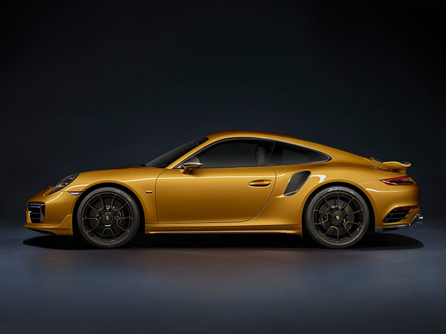 全新保时捷911 Turbo S Exclusive Series是迄今为止最强大而独特的911 Turbo S。3.8升的六缸水平对置发动机最大功率为607马力,最大扭矩为750 牛·米,从静止加速到100公里/小时仅需要2.9秒,加速到200公里/小时也仅仅需要9.6秒,最高时速达330公里/小时,全球限量500台。