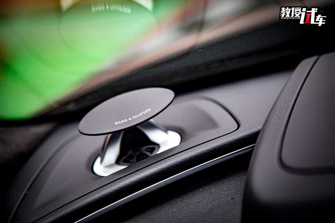 第三个是B&O音响,每当着车的时候A柱旁边的高音喇叭就会缓缓升起,简直就是艺术品般精美,这套音响的环绕声与人声的表现尤为突出,入耳舒服,让这段路途增添更多色彩。