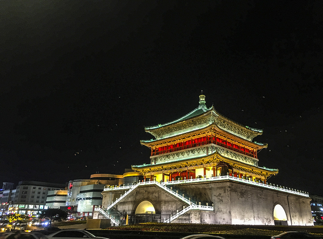 夜色中的西安,古时被堆砌起来的老砖沉淀着许多故事。钟鼓楼上的霓虹灯绚丽多彩,街道上人潮涌动,摸一摸那厚重的城墙,蓦然回首,你发觉你忽然抛弃了自己城市中的那种喧嚣吵闹,却被千丝万缕的情感缠绕住了。