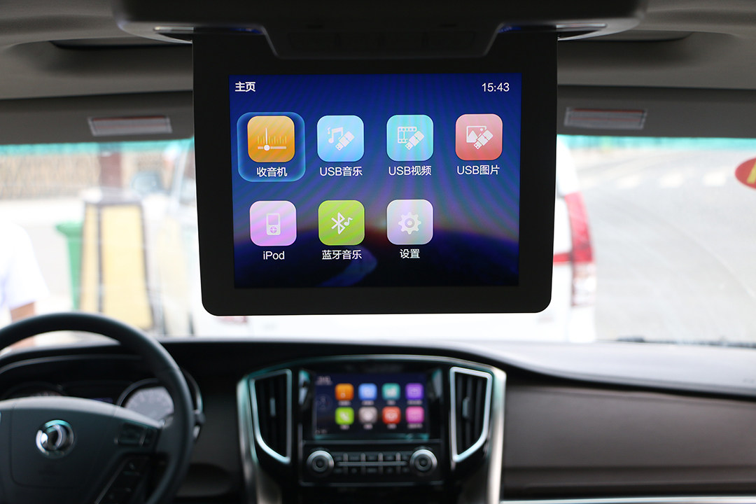 3.电动双天窗,220V电源插口,后排座椅加热,顶置高清液晶屏。