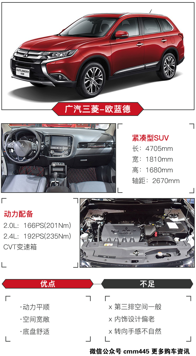 但欧蓝德的缺陷也较为明显,内饰较为老旧没有新意,空间表现也算不上优势,是欧蓝德相对弱势的地方。但从技术层面上看,三菱的四驱系统,表现非常突出,对于喜欢出去自驾游的消费者来说,在兼顾家用的同时,还有优异的越野性能。在消费者心中,帕杰罗所带来的硬派越野印象仍然存在,欧蓝德也继承了一定的越野性能。