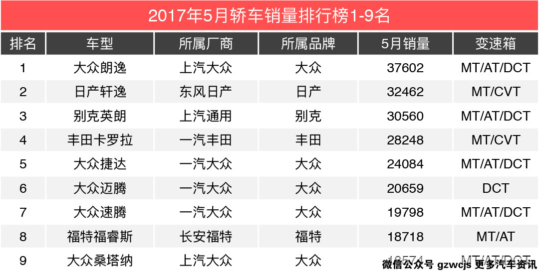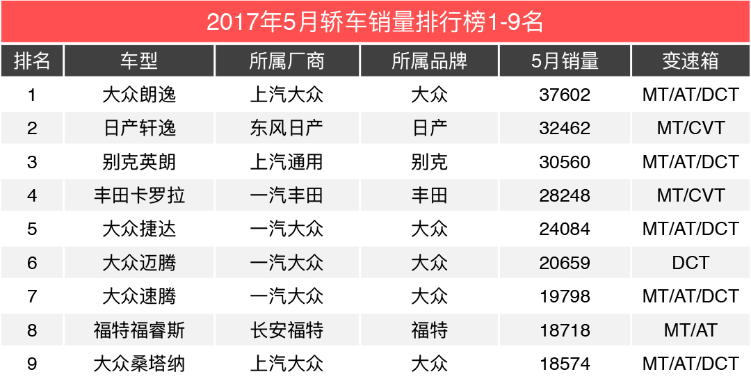 又过了几天,他找来了五月份的汽车销量一看,咦?双离合的车不是卖得挺好的嘛。