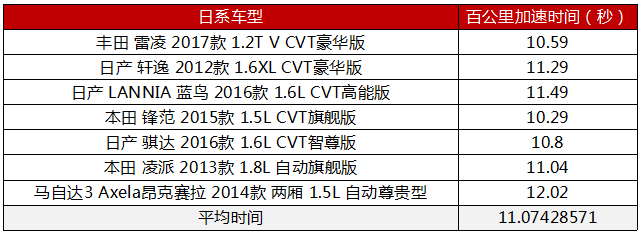 日系车有更高效的动力系统,在车身重量相同的前提下更高效的动力系统也就意味着更低的油耗更强的动力,通过加速表格也能看出同排量日系车加速普遍比同排量的其它车系车型好,因此别觉得德系车动力好,日系车好欺负,说不定分分钟被人家秒了哟~