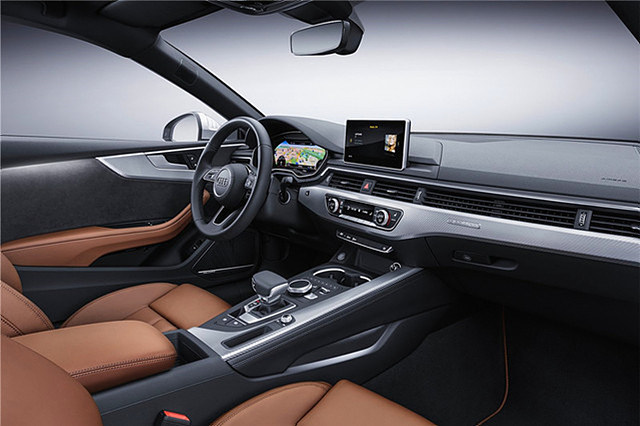 内饰造型则基本沿用了新A4的设计风格,区别在于新车配备了全新的多功能方向盘、8.3英寸独立中控液晶屏,而且新奥迪A5家族提供丰富多样的驾驶辅助系统,依托智能科技,提升车辆安全性、舒适性。其中带有交通拥堵辅助功能的自适应巡航(ACC)系统,在车速不超过65公里/小时的缓行路况下,可以承担制动和加速任务,减轻驾驶员的负担。此外,新车还配备转向辅助、泊车辅助、后方通行警告、开门警示、主动式车道保持系统和侧向辅助系统等。