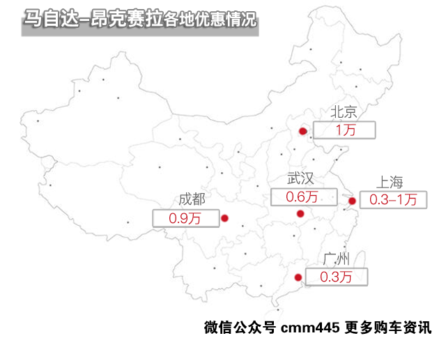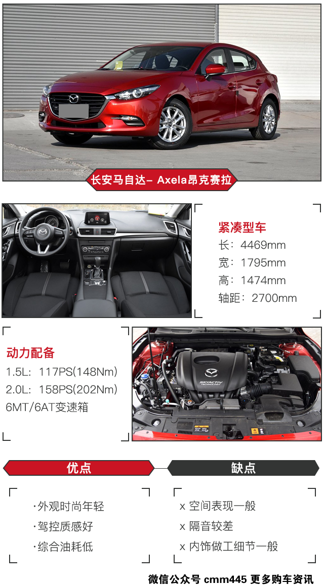 昂克赛拉的优惠幅度没有福克斯那么夸张,但有总比没有好。我会推荐买指导价为13.99万的1.5L 自动豪华型,配置上有倒车视频影像、电动天窗、中控大屏、LED日间行车灯和后座出风口等。