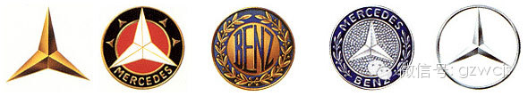 奔驰的标志最初是Benz外加麦穗环绕。到了1916年,戴姆勒公司和奔驰合并,星形的标志与奔驰的麦穗终于合二为一,下有Mercedes-Benz字样,后将麦穗改成圆环,并去掉了Mercedes-Benz的字样。而随着这两家历史最悠久的汽车生产商的合并,厂方再次为商标申请专利权,而此圆环中的星形标志演变成今天的图案,一直沿用至今。并成为世界十大著名的商标之一。