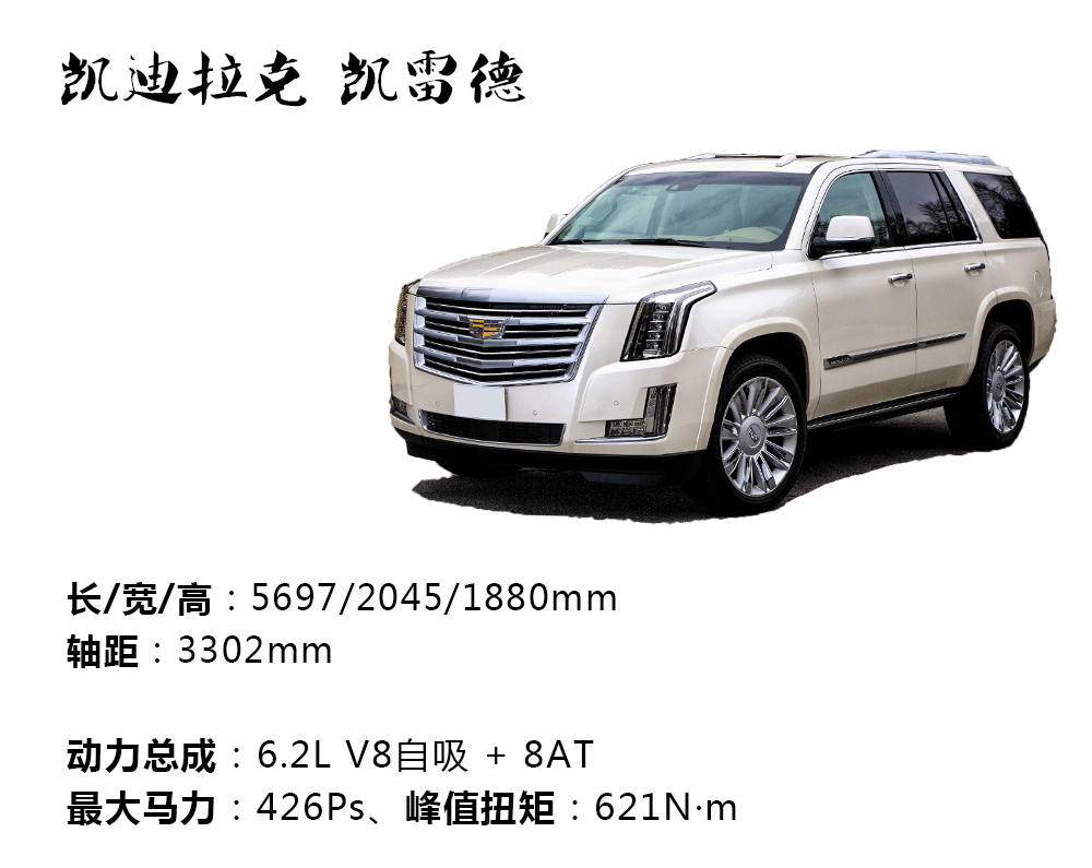 凯迪拉克凯雷德和英菲尼迪QX80。