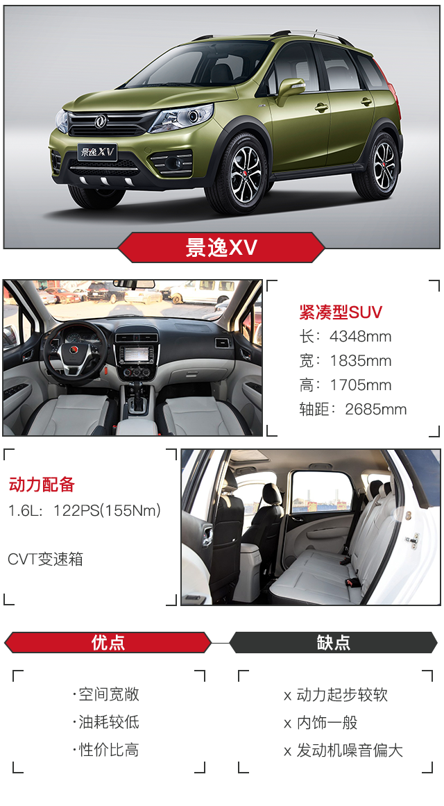 不管是内饰精致、科技感强的英致G5,还是燃油经济性表现出色的景逸XV,抑或者是动力充足的东风风光580,更重要的是它们在空间表现上都非常可观,而且最低八万就能买到好用的自动挡,其性价比不得不说很高啊,那么机智的你或许想快快入手了吧!