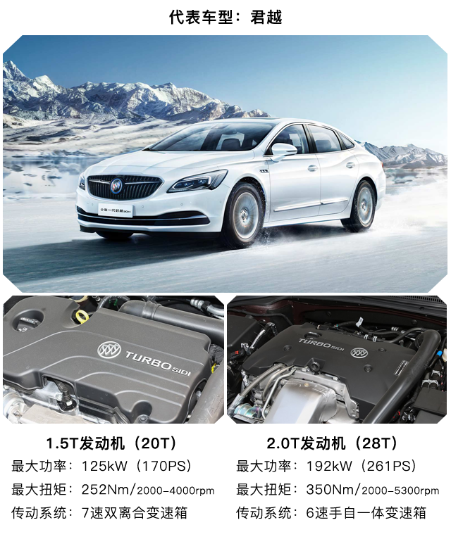 而20T对应的则是1.5T发动机,代表车型有威朗、昂科威;28T则为2.0T发动机,昂科威、别克GL8以及君越都有搭载。1.5T的发动机匹配双离合变速箱,在加速畅快感上还不错,但换挡逻辑需提升也是一个不争的事实。好消息是新一代君威已经舍弃了双离合换装了9AT变速箱,试驾后它的平顺性以及燃油经济性都能让人满意。