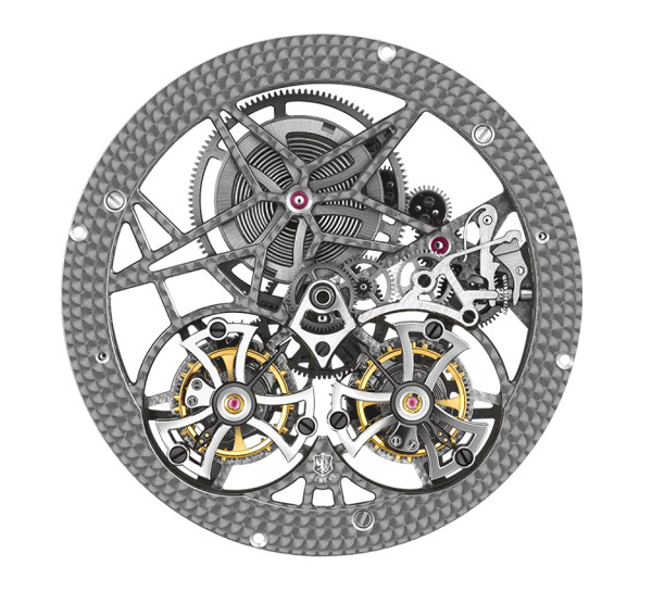 要说它哪里触碰了男人的神经,那一定是这个通透、前卫设计的自动上链镂空机芯。其实自动上链+镂空并不好实现,因为上链依赖于摆陀,镂空势必会影响动能。所以罗杰杜彼为了攻克这个技术难点,05年就创新设计出了微型摆陀取代传统的中央摆陀,使其具有轻盈剔透之身却不减功能效率。