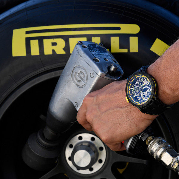 本次与倍耐力的合作,也正好体现了罗杰杜彼年轻化、前卫的设计理念。碰巧的是,2017年正好是倍耐力与世界赛车界的合作满100周年里程碑。在赛车运动中,倍耐力致力于为车手提供性能卓越、适用各种环境的轮胎,这与罗杰杜彼的造表理念是不谋而合的,适应恶劣环境、保证手表的稳定性,同时还得兼顾精湛工艺与设计,的确让人“垂涎欲滴”。