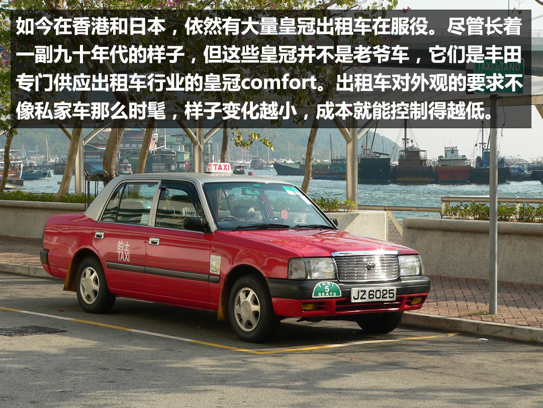 在南方地区,特别是广东,皇冠曾经的地位恰如其名。1984年,广州开始引进大量第七代皇冠用作出租车。在那个骑自行车已经风光满面的年代,坐得起出租车的必定是富贵人家,被冠以出租车之名的车也必须是豪华的代表。