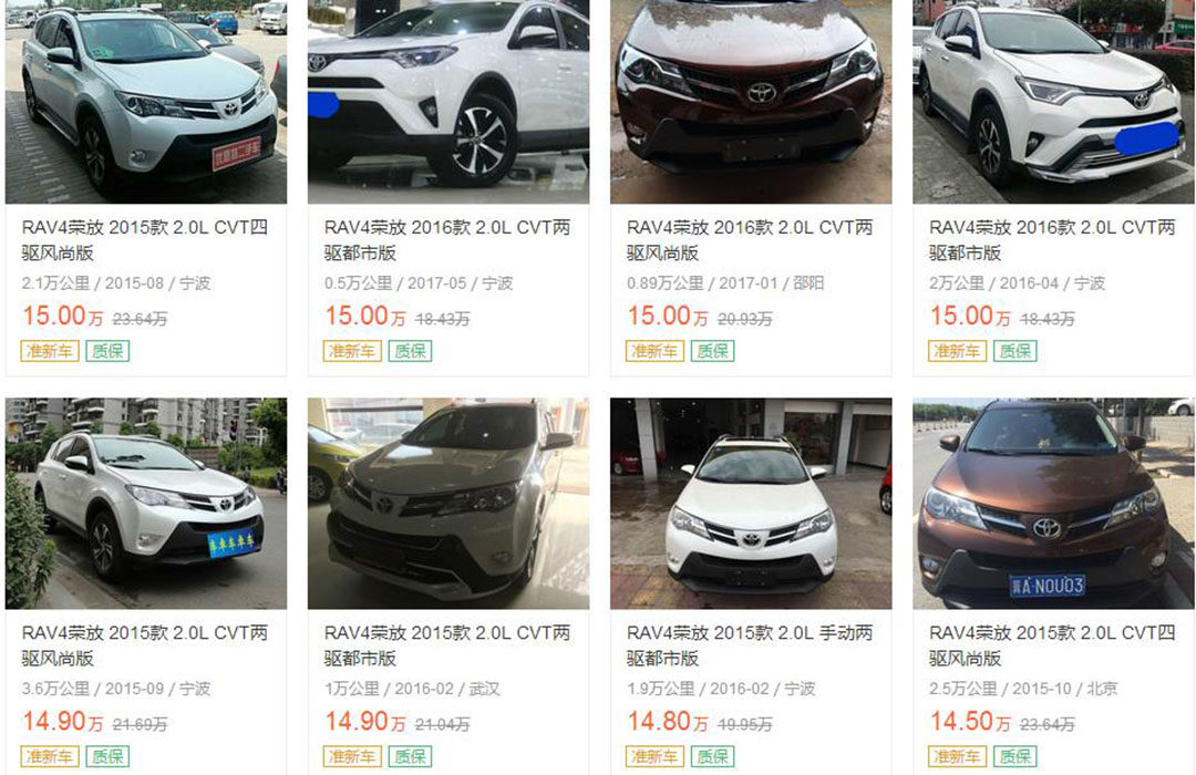 在二手市场上,10-15万的价格范围内,2.5L排量的车型车源比较少,相反的是2.0L排量的车型车源比较多。经过全新的换代以后,RAV4荣放在造型方面相对于2015款RAV4的车型外观表现更加激进,在同级别的车型中竞争力得到提高。在二手车市场中2016款的车型,比新车省3-6万左右,且准新车的车源比较少。