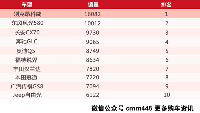 昂科威的表现依旧无敌,第一的位置坐得相当稳,销量拉开第二名6000多辆。而这已经是稍有退步的表现,上月更是拉开第二名8000多辆。而CX70也首次杀入前三名,出色的空间表现以及非常实惠的售价绝对是主因。