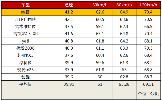 相比之下缤智的隔音就有些欠缺了。实测的缤智的噪音表现甚至还不如锋范;从数据看,缤智的每一项噪音都比同级别车型的平均值要高,所以说缤智隔音差并不算冤。