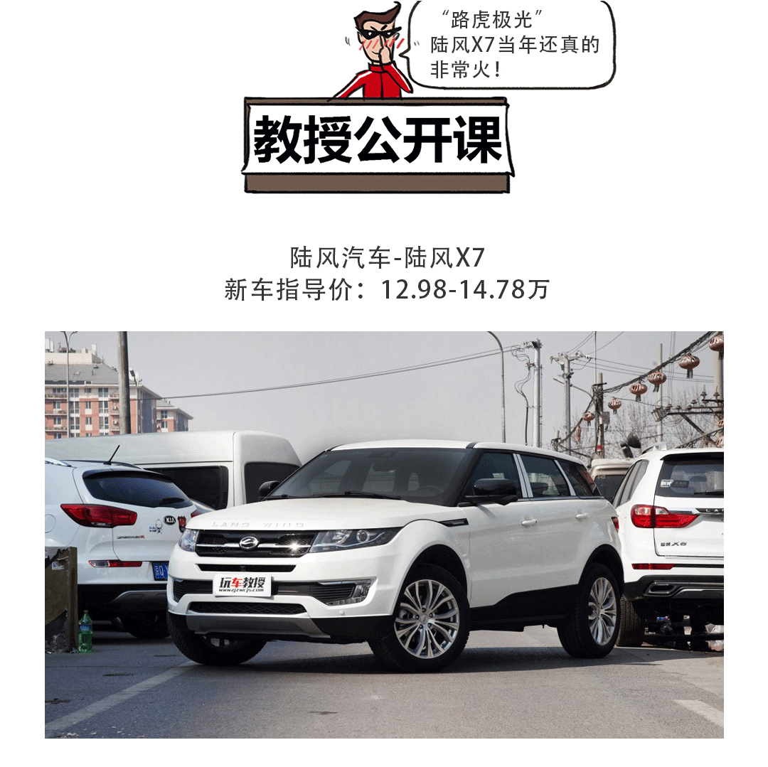 陆风X7相信是大家最熟悉的陆风汽车了,新车刚推出那会群众的反响非常剧烈,道理其实很简单,就是和众泰SR9一样,高仿!外观造型酷似路虎极光,真假难分辨!“小路虎”陆风X7还是采用了陆风X5的那套动力总成,同时只有仅仅2.0T一款动力可选。据可靠信息称,陆风X7新增搭载全新1.5T发动机的车型,降低其购买门槛,原本丰富的配置也有望得以保留。