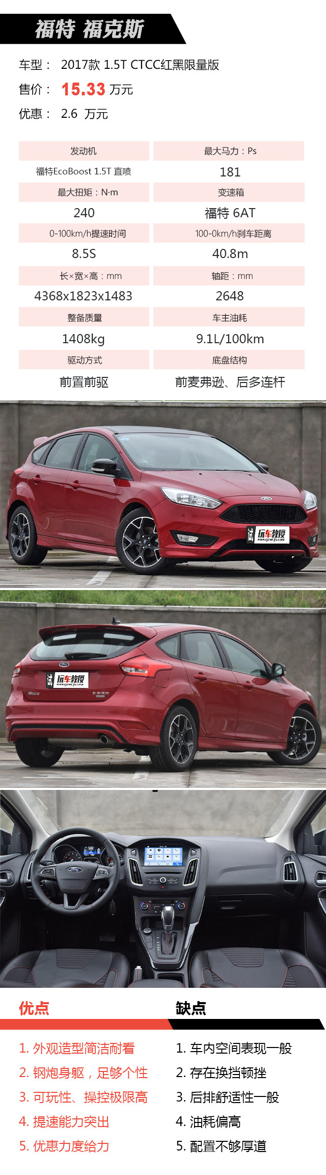 扯蛋:素有操控担当之称的福克斯,提速迅捷、操控上乘、底盘扎实赋予其拔群的运动属性。CTCC版对外观进行专项优化,直击年轻群体的消费命门,辅以给力优惠,让Focus成为众多年轻人的不二之选。前提你得接受它的配置水平和不太友好的乘坐空间。