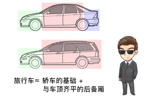 旅行车,顾名思义就是用于旅行的车。它是基于轿车而演变的,乘坐感受和轿车差别不大,前脸更是与轿车没什么区别(宝骏310和宝骏310W的前脸就区别不大),主要是将后备厢加高到与车顶齐平。那就比轿车有更宽敞的行李空间。