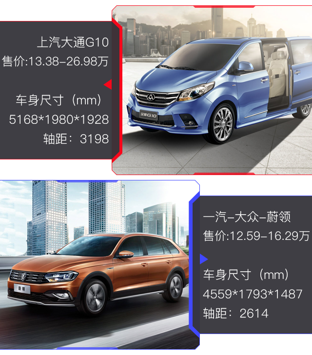 说得很泛?那虎哥就“牵”两台车出来对比一下。MPV选的是大通G10,而旅行车选出蔚领。