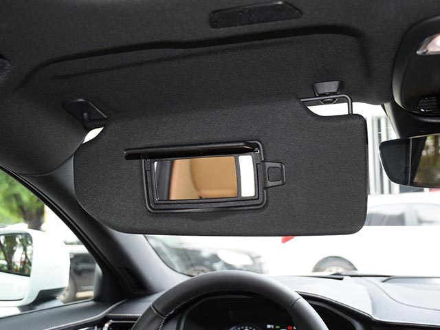遮阳板化妆镜是指在驾驶员和副驾驶员头部前方的遮阳板里安装的化妆镜。有些低配车型为了控制车型成本,降低售价,将遮阳板内的化妆镜去掉。而部分车型也只是副驾驶一侧有这个配置,而大多数车型则两边都有化妆镜,并配有照明灯。