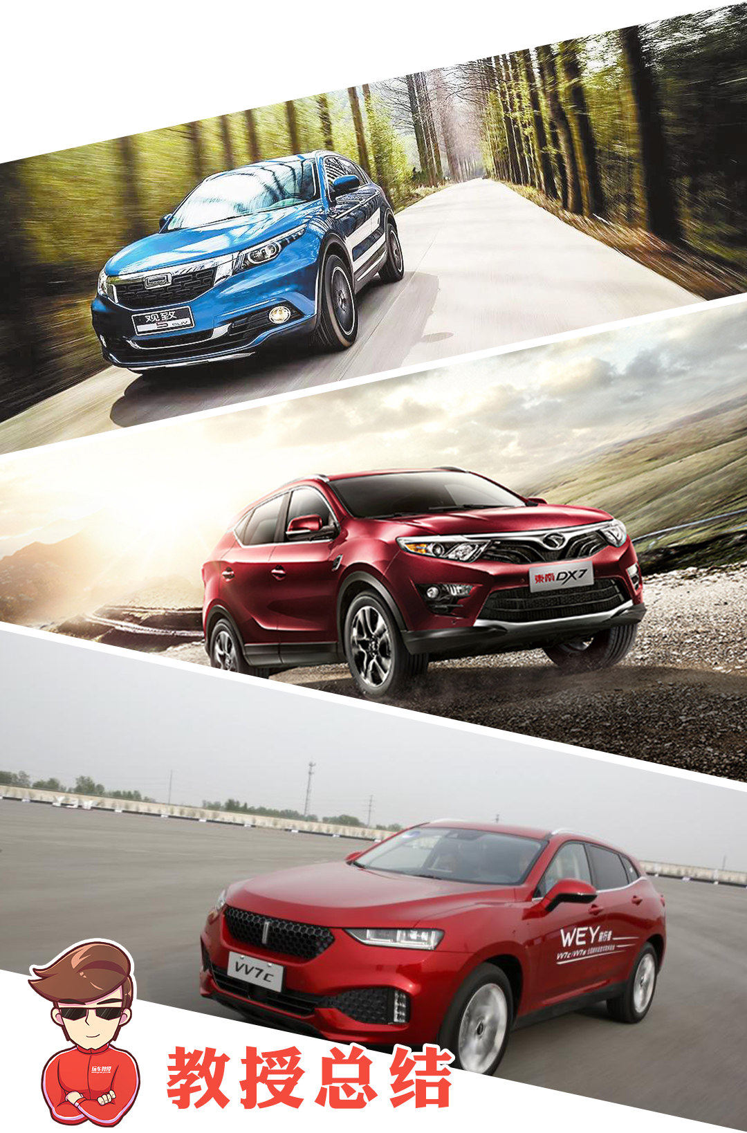 几款SUV都比较符合现在消费者的需求,要大空间又舒适实惠的,东南DX7就非常不错了,14万就顶配了,居家实用照顾家人很合适;观致5主要更加合适追求独特品质的消费者,车的品质还是可以的,奈何定位和价格等原因一直卖不好;VV7是新晋车型,在豪华感和品质方面都做得相当到位,性价比几乎是越级的存在。